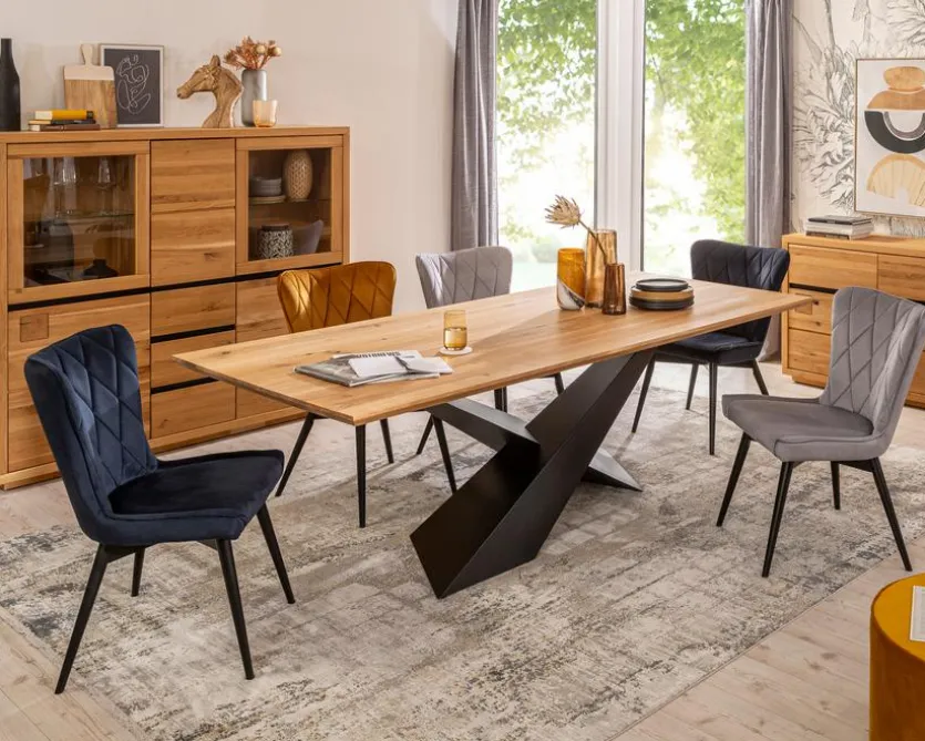 Das Label G+K präsentiert Ihnen mit dem Esstisch New Mexico 260×100 cm eine ausgesprochen geschmackvolle Ergänzung für das heimische Wohnambiente. Vor allem das attraktive Zusammenspiel eines stylisch gestalteten Gestells mit einer Platte aus geölter Wildeiche bestimmt den unwiderstehlichen Look dieses Esszimmertisches. Zudem dürfen Sie von dem erstklassig verarbeiteten Esstisch New Mexico 260×100 cm hervorragende Qualität erwarten.