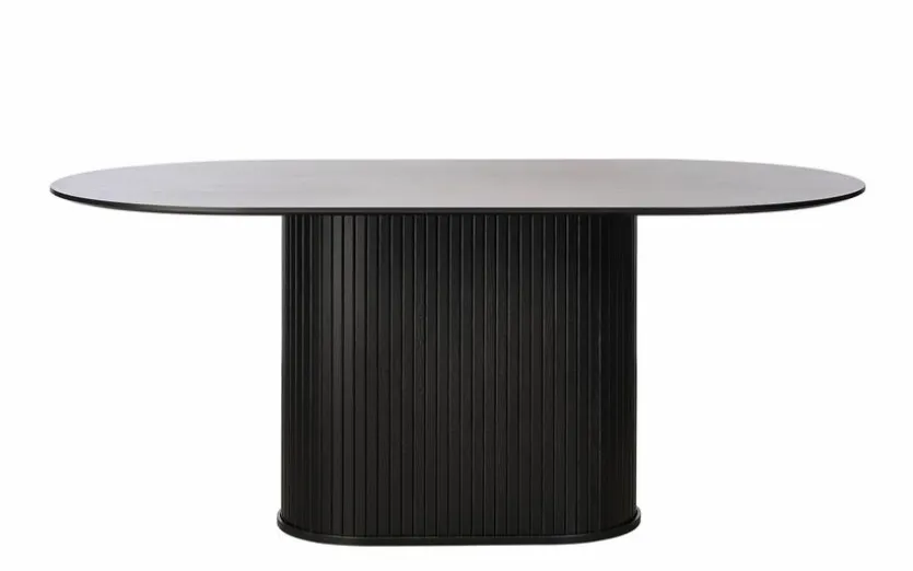 Mit dem Esstisch Nola 180×95 cm erhalten Sie ein Möbelstück im zeitgemäßen Erscheinungsbild. Der Esszimmertisch bietet dank seiner großen, formschön gestalteten Platte viel Platz für die ganze Familie. Außerdem wirkt der Esstisch Nola 180×95 cm durch das Untergestell im Rollladen-Design äußerst ansprechend.