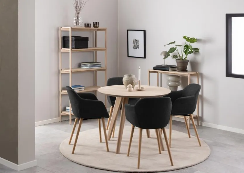 Ein Gestell aus Eiche und eine Platte in ansprechender Holz-Optik verleihen dem Esstisch Townsville Ø 100 cm der Marke DAHEIM ein attraktives Erscheinungsbild. Mit dieser Optik erzeugt der Esszimmertisch in Ihrem Zuhause eine ebenso einladende wie geschmackvolle Atmosphäre. Auch in puncto Qualität kann der erstklassig gefertigte, robuste Esstisch Townsville Ø 100 cm auf ganzer Linie überzeugen.