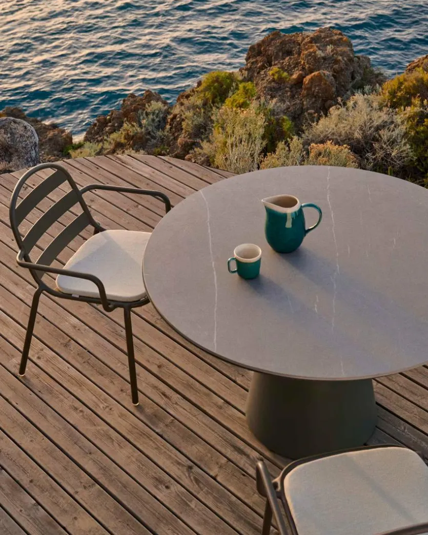 Der Esstisch Tudons 120 cm von Kave Home wirkt modern und fantastisch puristisch. Ein konisches Sockeldesign und eine runde, schlicht gehaltene Platte machen den Look dieses Esszimmertischs aus. Sowohl für den Außen- als auch für den Innenbereich stellt der Esstisch Tudons 120 cm eine fantastische Option dar.