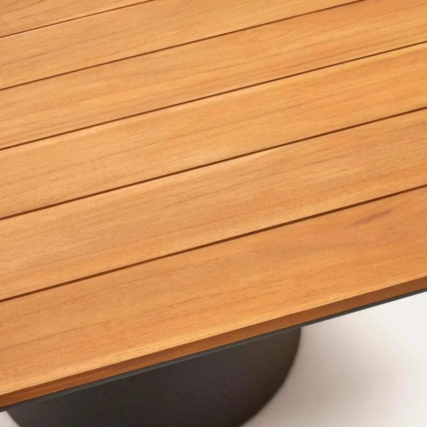Teakholz ist ein besonders hartes, robustes und witterungsbeständiges Edelholz, das sich sowohl für Innen- als auch für Outdoor-Möbel eignet. Die charakteristische Farbe variiert zwischen mittel- und goldbraunen Tönen.