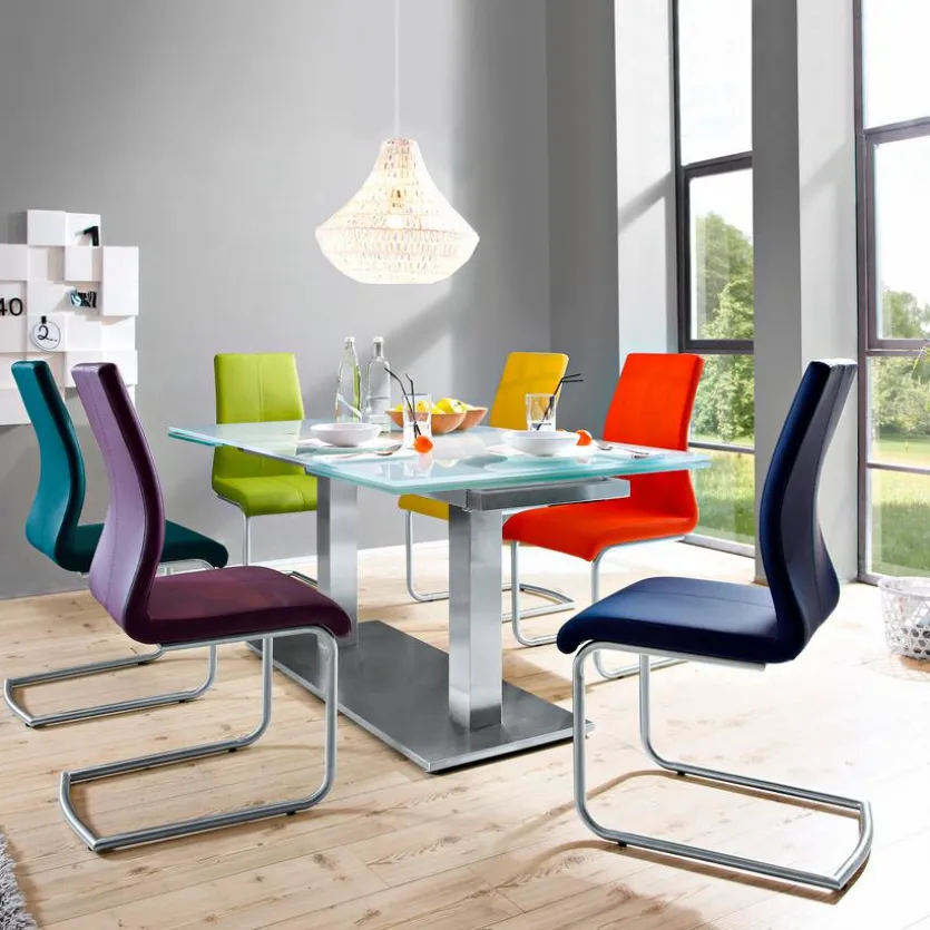 Im modernen und extravaganten Look präsentiert sich der Freischwinger Milano. Dieser Schwingstuhl ist ein Eyecatcher und kann je nach persönlichem und individuellem Geschmack in nahezu jedem Wohnraum verwendet werden. Die geschwungene Form passt sich sehr gut der Wirbelsäule an und ermöglicht damit bequemes Sitzen.