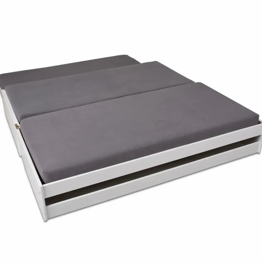 - Mit 3 Liegeflächen je 90 x 200 cm; wir empfehlen Matratzen mit einer Matratzenhöhe von max. 12 cm
