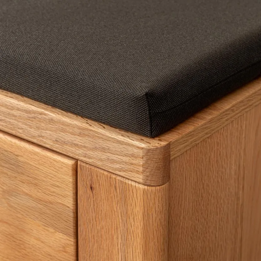 Gestalten Sie Ihr Zuhause natürlich und modern mit der Garderobenbank Graz. Die Umkleidebank vereint einen warmen, ästhetischen Look mit praktischem, funktionalem Nutzen. In der Schublade der Garderobenbank Graz lassen sich Accessoires, Schuhputzzeug oder sonstige Dinge aufbewahren, und das Sitzpolster lädt dazu ein, bequem Platz zu nehmen und Schuhe anzuziehen.