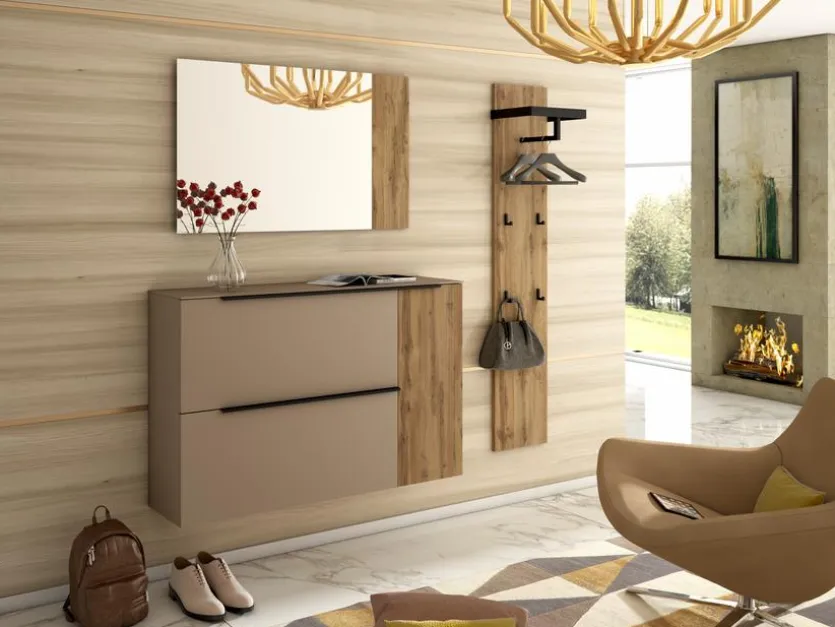 - Garderobe aus Hänge-Schuhschrank, Spiegel und Garderobenpaneel