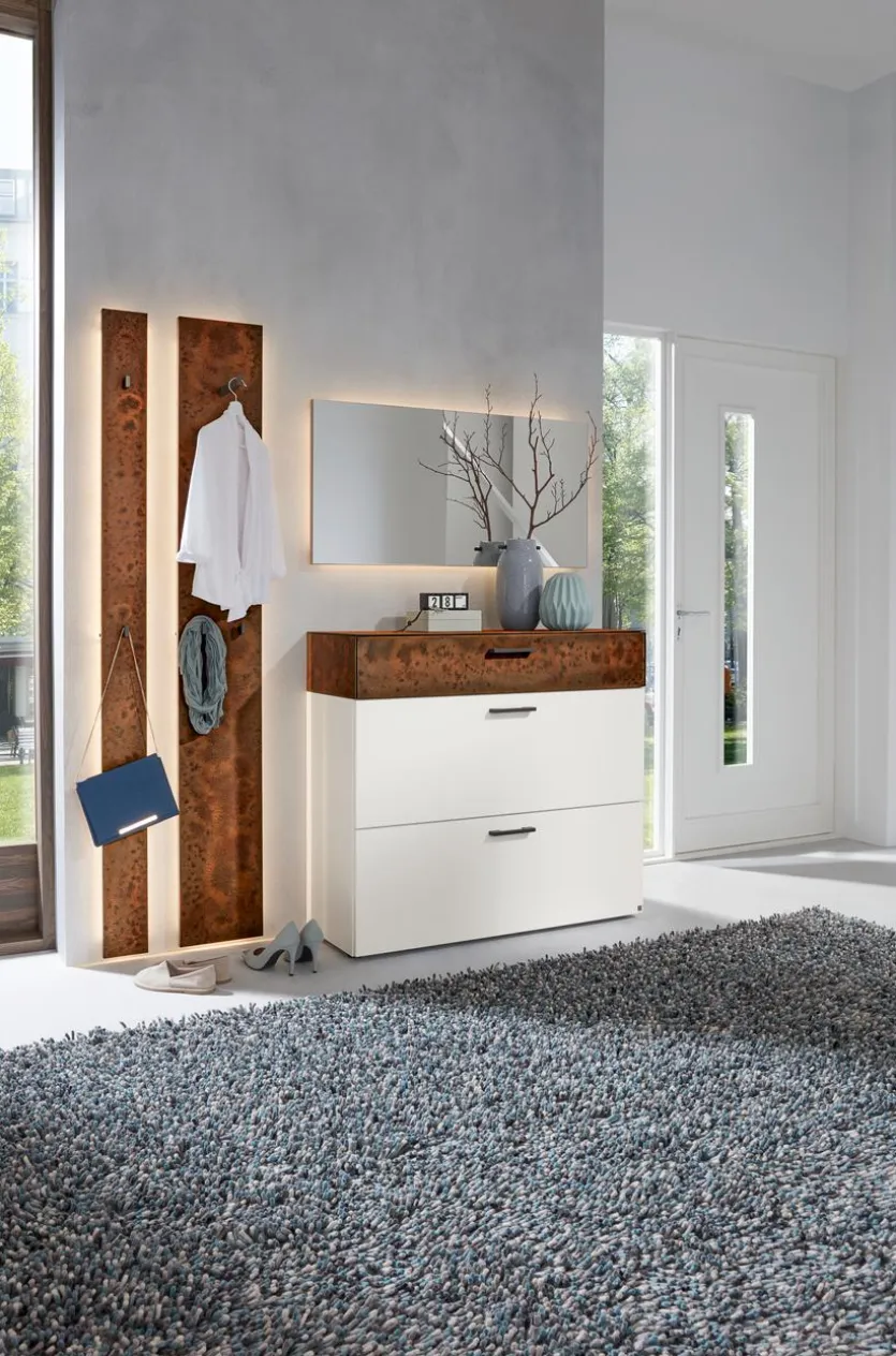 Die Garderobenkombination Odessa von Musterring sorgt für Ordnung und wartet mit einem grandiosen Look auf. Geradlinige Formen, kraftvolle Farbkontraste und minimalistisch gezeichnete Details bestimmen hier das beeindruckende Erscheinungsbild. Schaffen Sie mit der Garderobenkombination Odessa ein Ambiente in Ihrem Eingangsbereich, das moderne Eleganz und Klasse vermittelt!