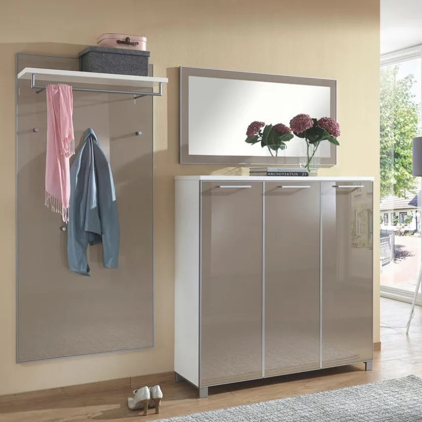 - Garderobe aus Schuhschrank, Spiegel und Garderobenpaneel