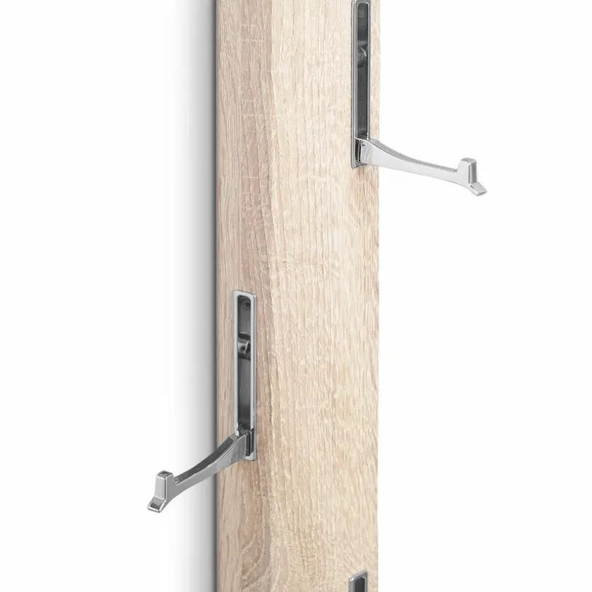 Für enge Dielen und Flure stellt die Garderobe Palo eine interessante Option dar. Durch die schmale Form benötigt die modern und schlicht wirkende Kleidergarderobe nur wenig Platz. Darüber hinaus lassen sich bei der Garderobe Palo die übereinander angebrachten, verchromten Haken ein- beziehungsweise ausklappen.