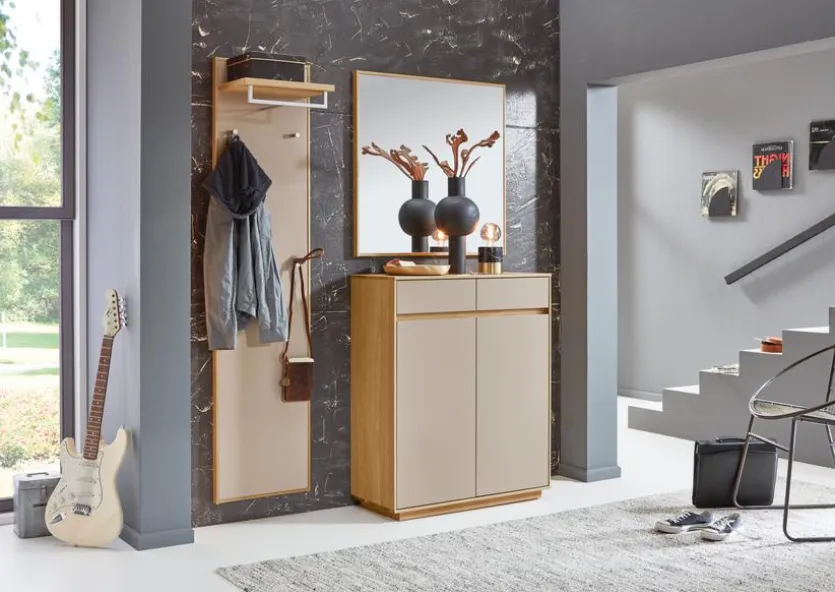 Das hübsche Garderobenpaneel V100 von Voss Möbel bringt Ihnen auf stilvolle Weise Platz für Mäntel, Taschen und mehr. Dank seines edlen Designs setzt dieses Dielenpaneel einen besonderen Akzent. Mit dem Garderobenpaneel V100 der Marke Voss Möbel haben Sie beim Verlassen der Wohnung alles Wichtige griffbereit.