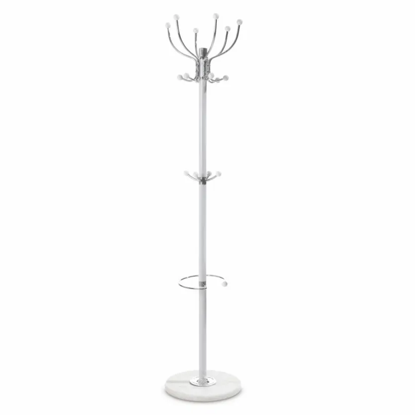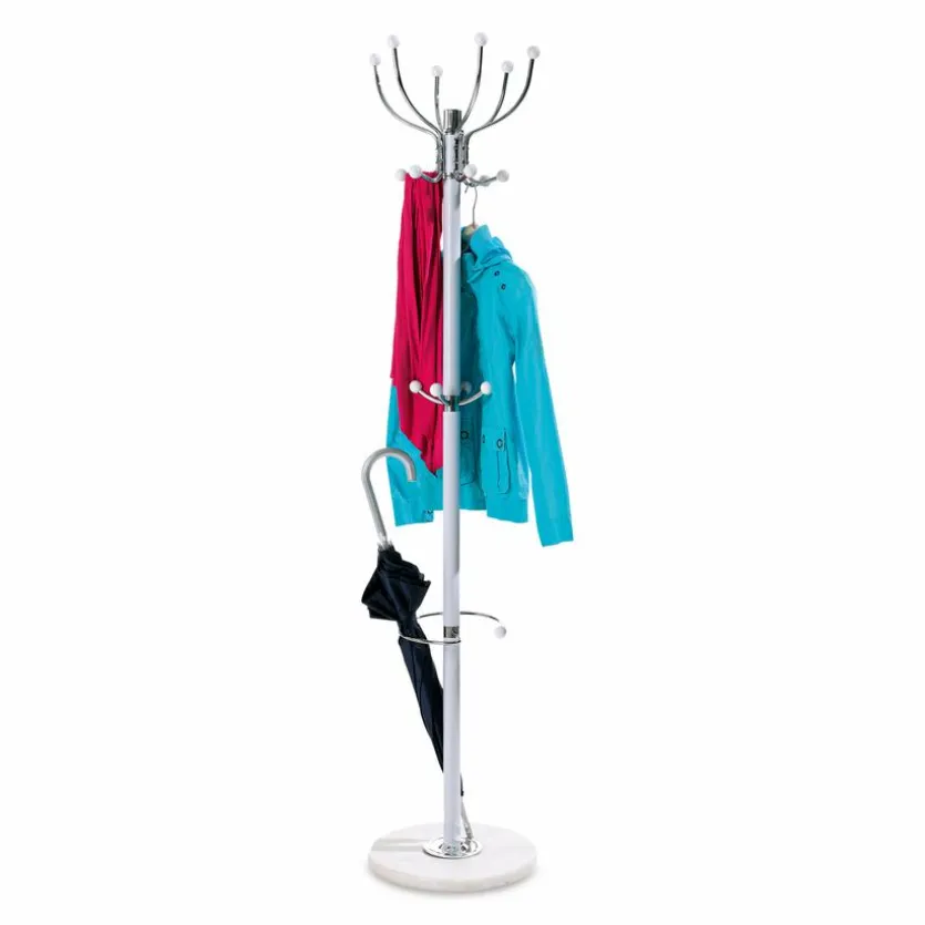 Der Kleiderständer Madrid ist nicht nur schick, sondern auch besonders praktisch. Dank mehrerer Garderobenhaken können Jacken, Mäntel und Hüte stets ordentlich auf dem Garderobenständer aufbewahrt werden. Außerdem ist der Kleiderständer Madrid mit einem Schirmhalter ausgestattet. Ein Marmorfuß sorgt für die notwendige Stabilität.