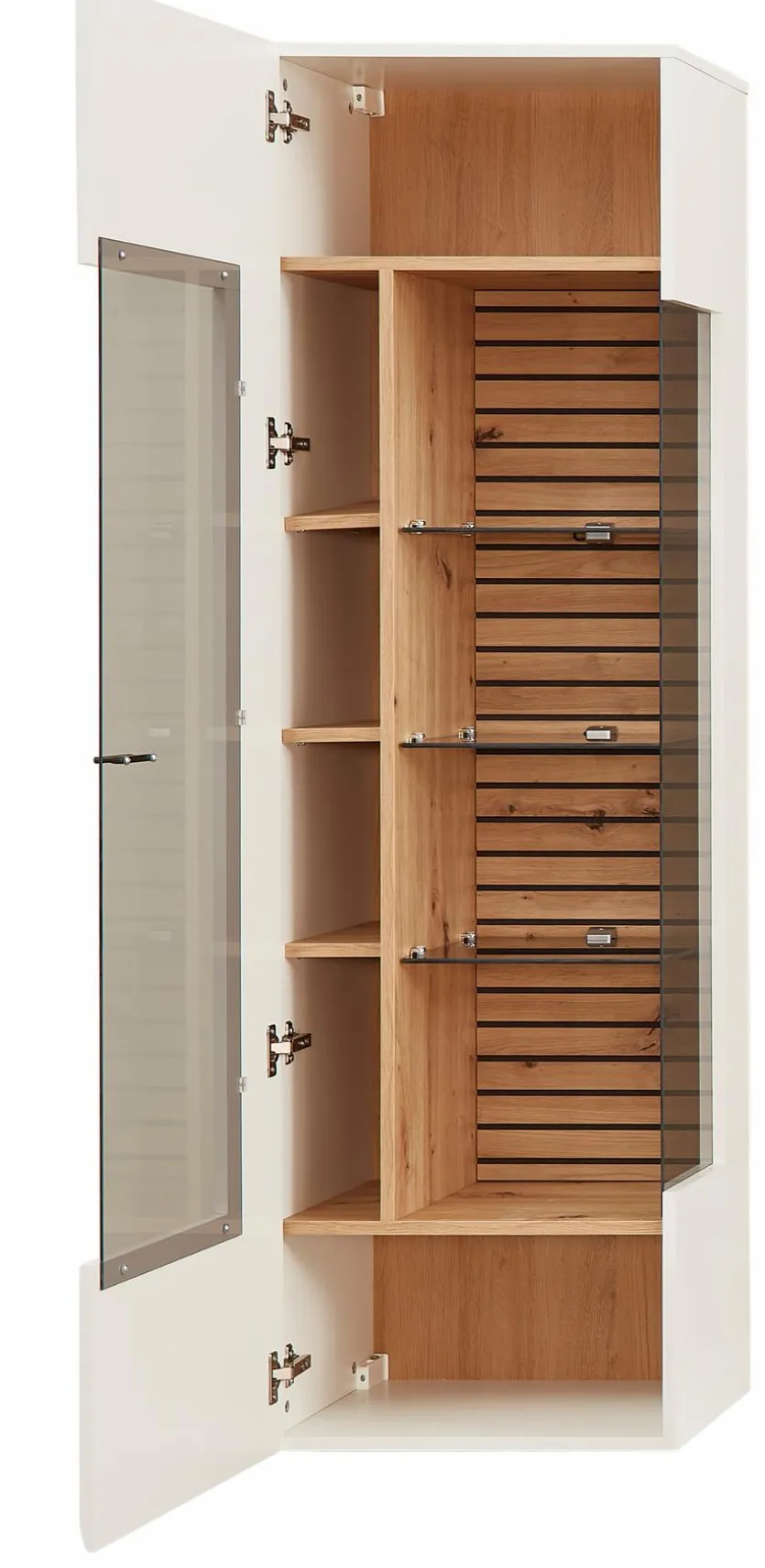 - Korpus aus Holzwerkstoff (MDF) in matt Weiß bzw. Artisan Eiche Nachbildung