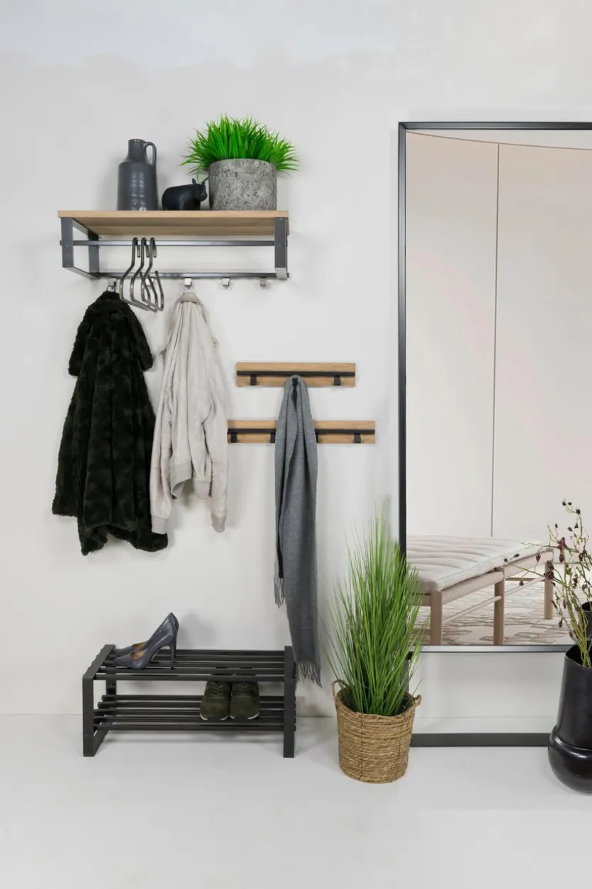 Die Hakenleiste Rumo bietet praktischen Platz zum Aufhängen von Jacken, Mäntel, Taschen oder anderen Dingen. Neben der hohen Funktionalität begeistert sie auch durch ein attraktives Design. Mit der Halterung aus Massivholz und der Leiste aus Metall ist die Hakenleiste Rumo optisch sehr ansprechend.