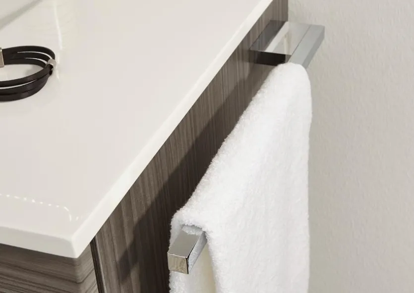 Der Handtuchhalter aus dem Sortiment von Puris erweitert die Ausstattung in Ihrem Sanitärbereich um ein sinnvolles Produkt. In der Folge haben Sie Ihre Textilien, zu denen auch Waschlappen oder Badematten zählen können, stets griffbereit. Aufgrund des zurückhaltenden Designs passt der Handtuchhalter zudem in viele Arrangements.