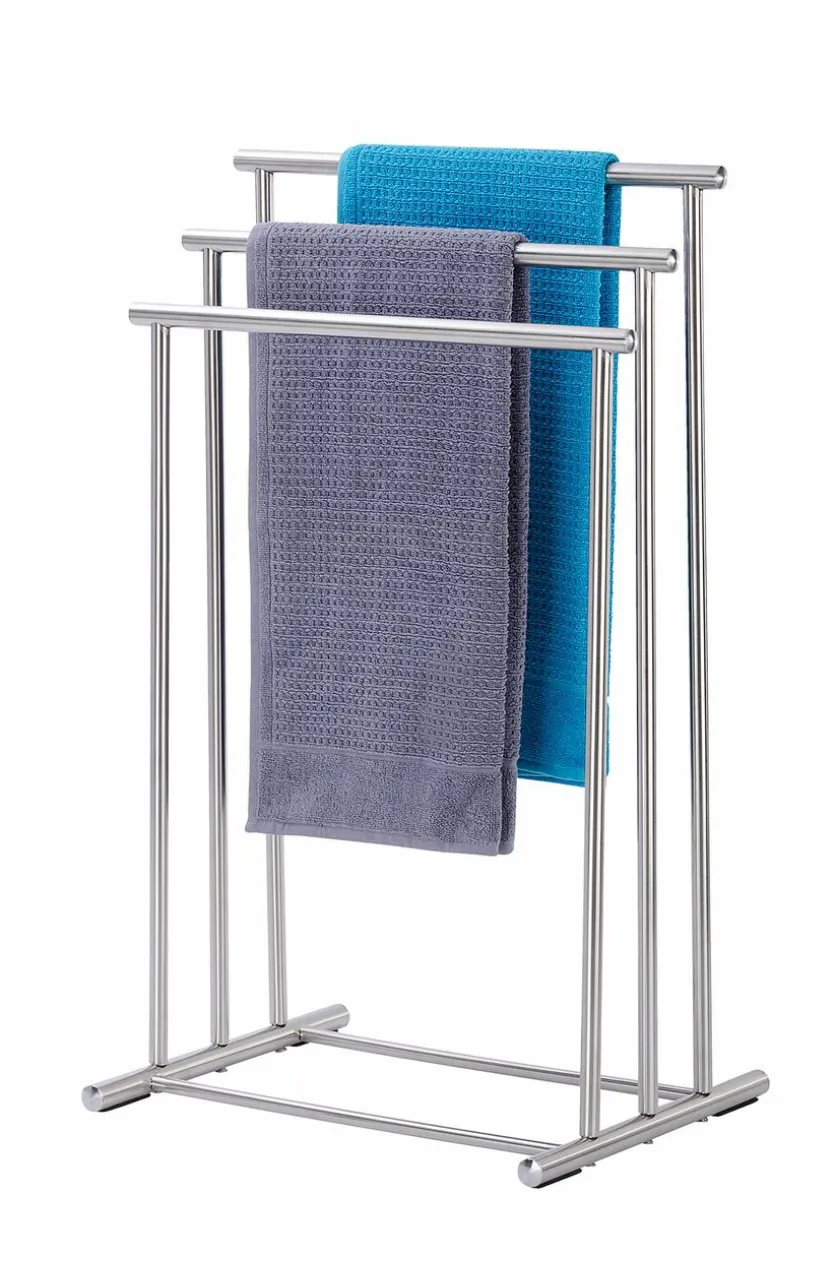 In drei verschiedenen Höhen sind die Stangen an dem eleganten Handtuchständer Lioni der Marke WENKO angeordnet. Der hochwertige Handtuchständer Lioni von WENKO kann überall aufgestellt werden, wobei die vier Gleiter unter dem stabilen und sicheren Gestell einen festen Halt selbst auf glattem Boden verschaffen.