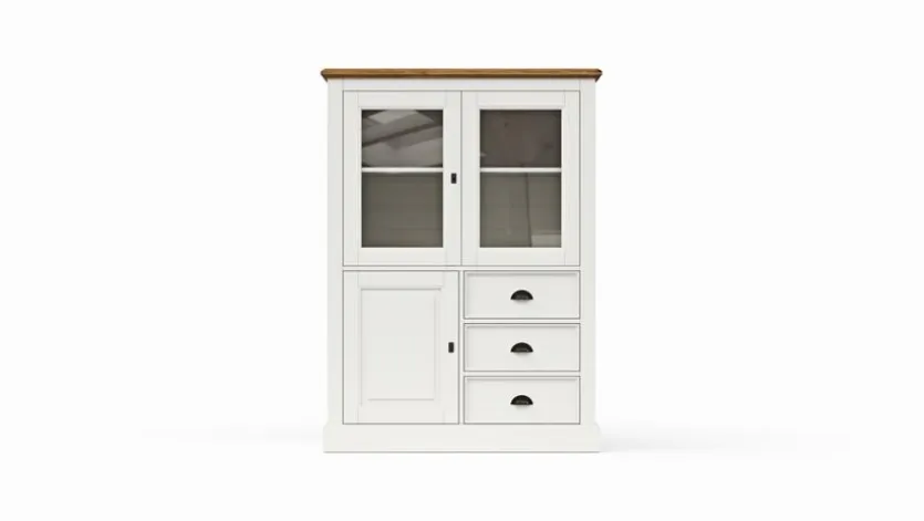 Liebhaber von Landhausmöbeln und des Scandi-Styles haben mit dem Highboard Barreiro ihre wahre Freude. Die attraktive Kommode präsentiert sich nämlich in rustikaler Optik und lässt sich daher perfekt mit diesen beiden Wohnkonzepten vereinbaren. Dafür sorgt nicht zuletzt die attraktive Kassettierung, die diesen Eindruck auf elegante Weise unterstreicht. Egal, ob im Wohnzimmer, Esszimmer oder Arbeitszimmer, das Highboard Barreiro schafft im Handumdrehen eine heimelige Atmosphäre.