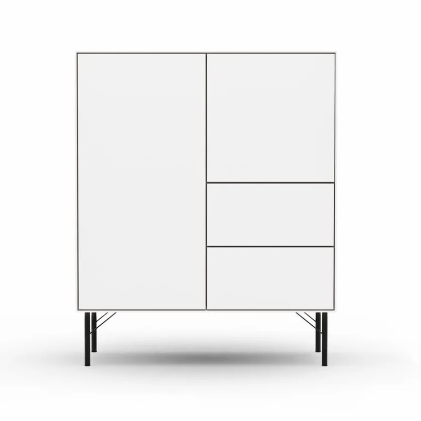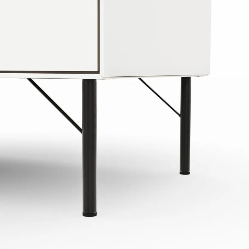 - Aus Holzwerkstoff (MDF) mit Lack in weiß, Gestell aus pulverbeschichtetem Metall in schwarz