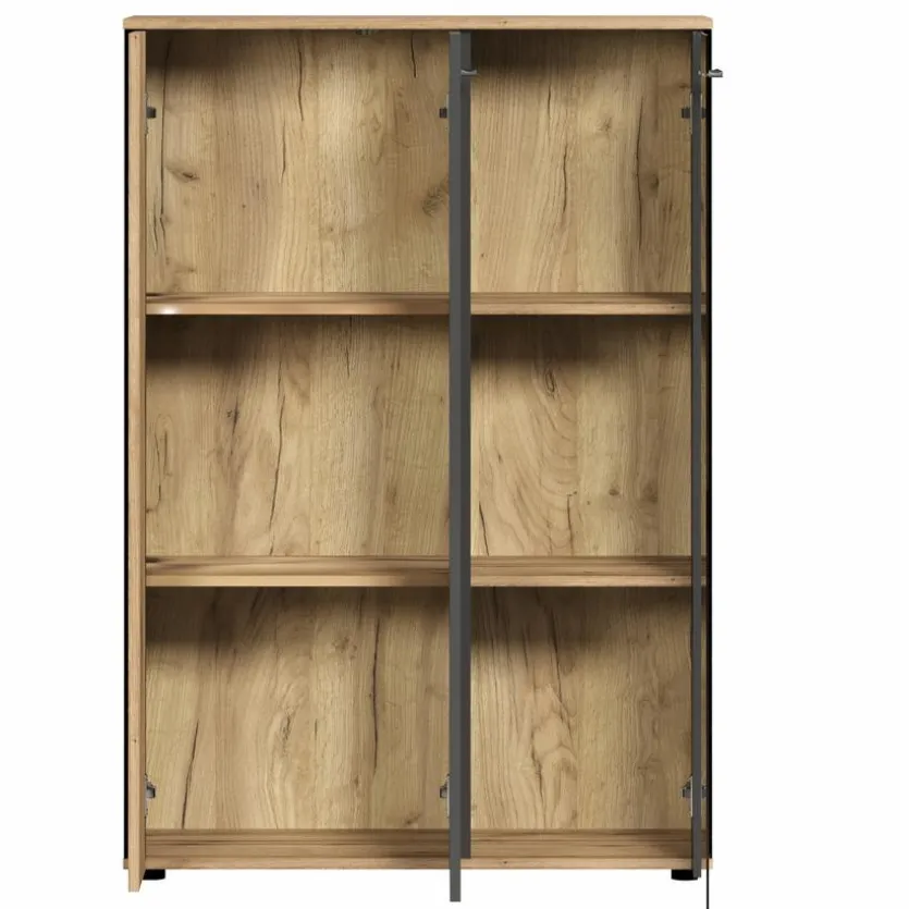 - Mit 3 Türen (1 Türe mit Glaseinsatz) und 4 Einlegeböden