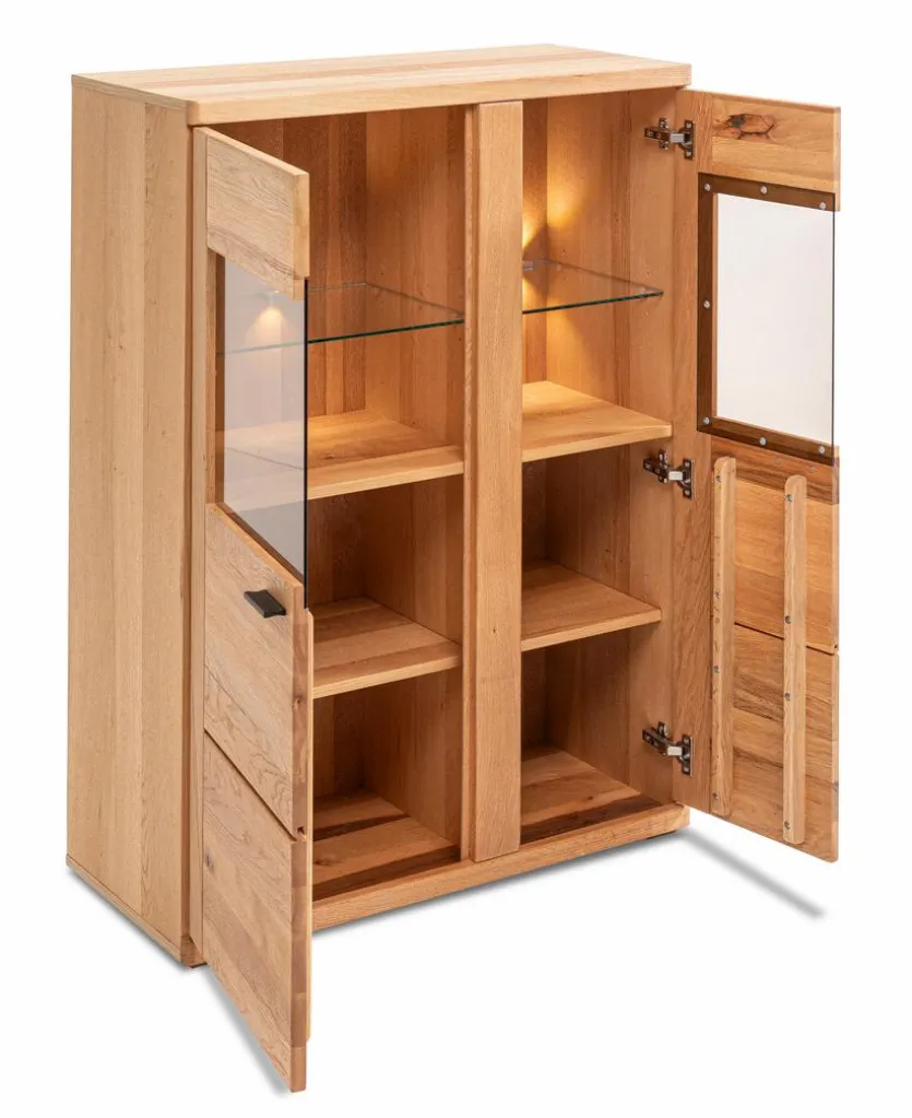 - Front bestehend aus Vollmassiver Zerreiche, Korpus bestehend aus Zerreiche furniert, Oberfläche in Zerreiche Natur geölt