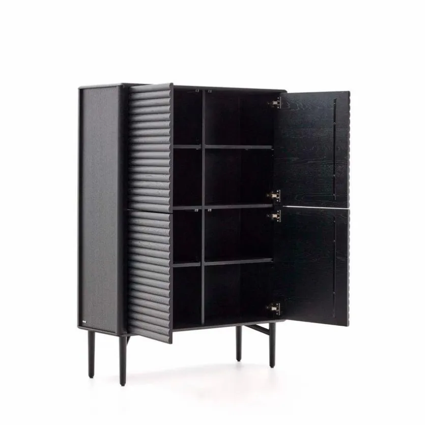 Mit geschmackvollem Design und schönen Lamellentüren zieht das Highboard Lenon von Kave Home die Blicke auf sich. Im Inneren der Kommode verbirgt sich hinter insgesamt vier Türen viel Stauraum für Geschirr, Tischdecken, Hobbyartikel oder sonstige Dinge, die Sie aufbewahren möchten. Dank der schlichten Farbgebung passt das Highboard Lenon zu jedem Einrichtungsstil, ob modern, ländlich, dezent oder klassisch.
