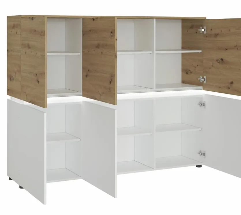 Das Highboard Luci aus dem Hause Wójcik überzeugt optisch mit seinem authentischen Holzdesign, das angenehm ins Auge fällt. Darüber hinaus bietet Ihnen diese Kommode sehr viel Stauraum. Auf diese Weise trägt das Highboard Luci zur Ordnung in den eigenen vier Wänden bei.
