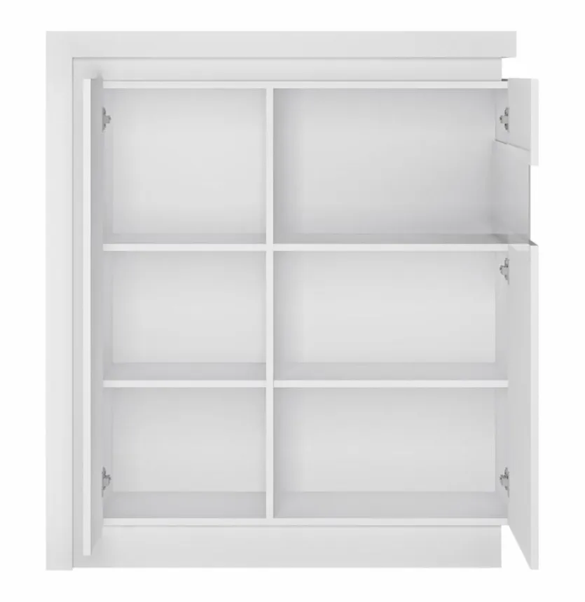Mit dem Highboard 2-trg., Lyon von FORTE werden Einrichtungsträume wahr. Sein Korpus lässt sich einseitig an andere Möbelstücke oder eine Wand anschließen. Egal, ob Sie die FORTE Kommode im Wohnzimmer, Esszimmer oder Schlafzimmer verwenden wollen, überall können Sie sich über ihr ansprechendes Design und ein großes Stauraumangebot freuen. Ein Glaseinsatz gibt den Blick ins Innere frei und lässt das Highboard 2-trg., Lyon zur Vitrine werden.