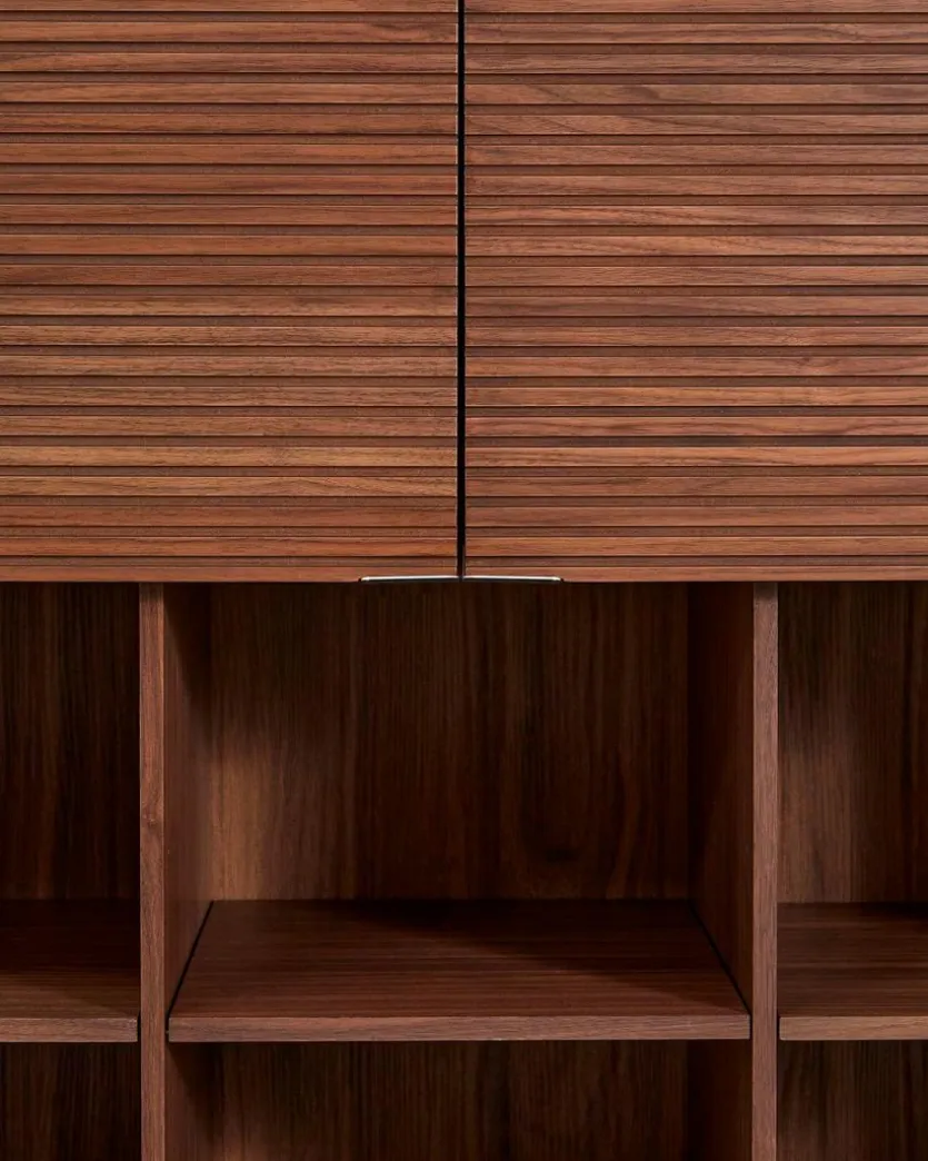 Ein zarter Touch von Mid-Century-Style prägt das elegante Highboard Norlen von Kave Home und macht es zum angesagten Statement-Piece. Diese Kommode mit abgerundeten Ecken und apartem Nussbaum-Furnier konfigurieren Sie individuell, indem Sie die inneren und äußeren Regalböden verstellen. Durch edle Retro-Raffinesse mit viel Stauraum avanciert das Highboard Norlen zum trendigen Interior-Highlight eines gehobenen Einrichtungsstils.
