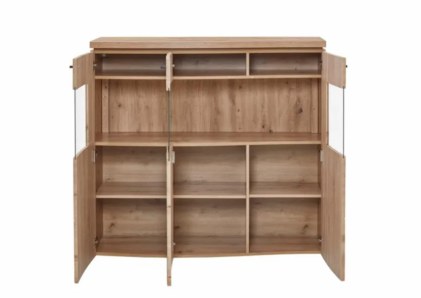 Das Highboard Rondo besticht durch seine hohe Qualität und sein rustikales Design. Dank mehrerer Einlegeböden sorgt die Kommode für reichlich Platz in Ihrem Wohnbereich. Durch seine Glasfront bietet das Highboard Rondo zudem noch die Möglichkeit Bilder, Bücher oder sonstige Dekoobjekte gut sichtbar aufzustellen.