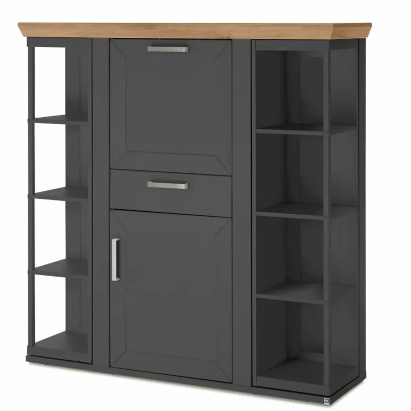 Farbe: Graphit / EicheMaterial: DekorGröße: Breite: 140,20 cm, Höhe: 143,30 cm, Tiefe: 42,60 cm