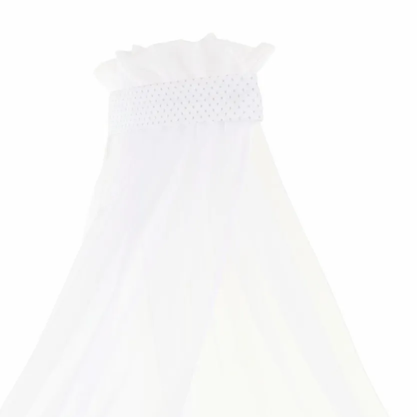 - Himmel in weiß, Bordüre aus Stoff in weiß mit Punkten in perlgrau