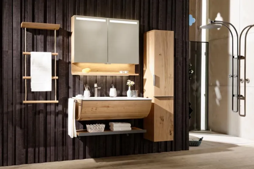 Zaubern Sie mit dem Hochschrank Vquell von Voglauer alpines Flair in Ihr Badezimmer und sorgen Sie auf diese Weise für Gemütlichkeit pur. Die klar gezeichneten Details und Formen dieses Modells passen exzellent zu vielen modernen Armaturendesigns. Zudem ist der Hochschrank Vquell die perfekte Ergänzung zu den anderen Möbeln der Serie aus dem Hause Voglauer.