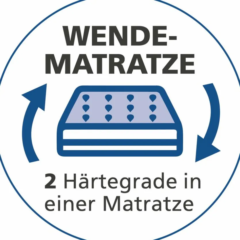 - 7-Zonen- Komfortschaumkern mit innovativer Schulterkomfortzone und mittelfestem Liegekomfort bzw. 7-Zonen-Hybridschaumkern mit innovativer Schulterkomfortzone und extra festem Liegekomfort