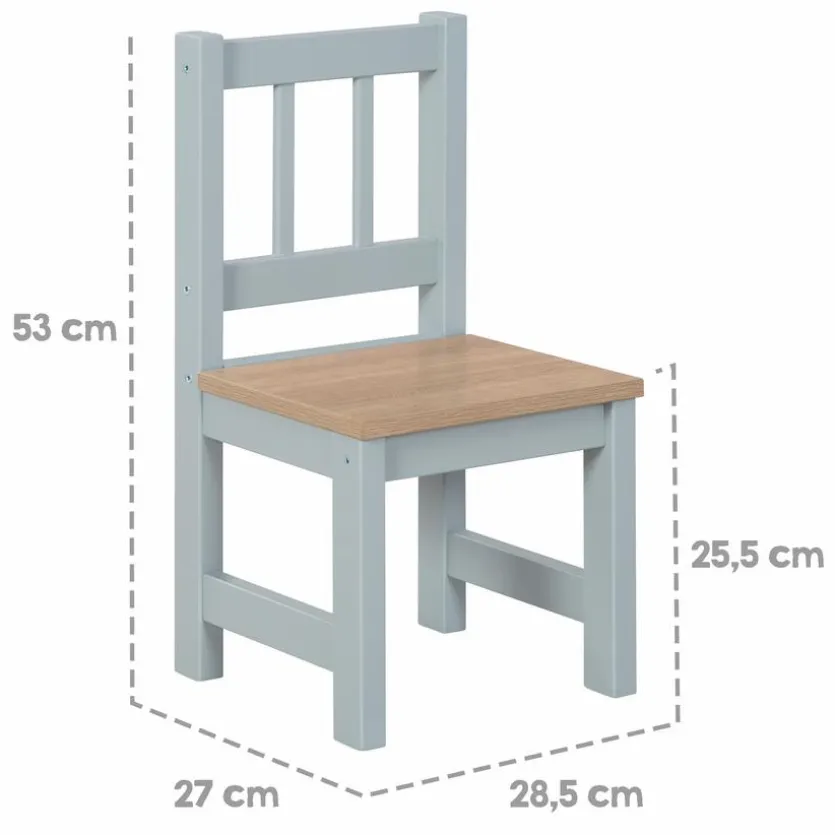 - Bestehend aus Kindertisch BHT 60 x 48,5 x 60 cm und 2 Kinderstühlen BHT 27 x 53 x 27 cm