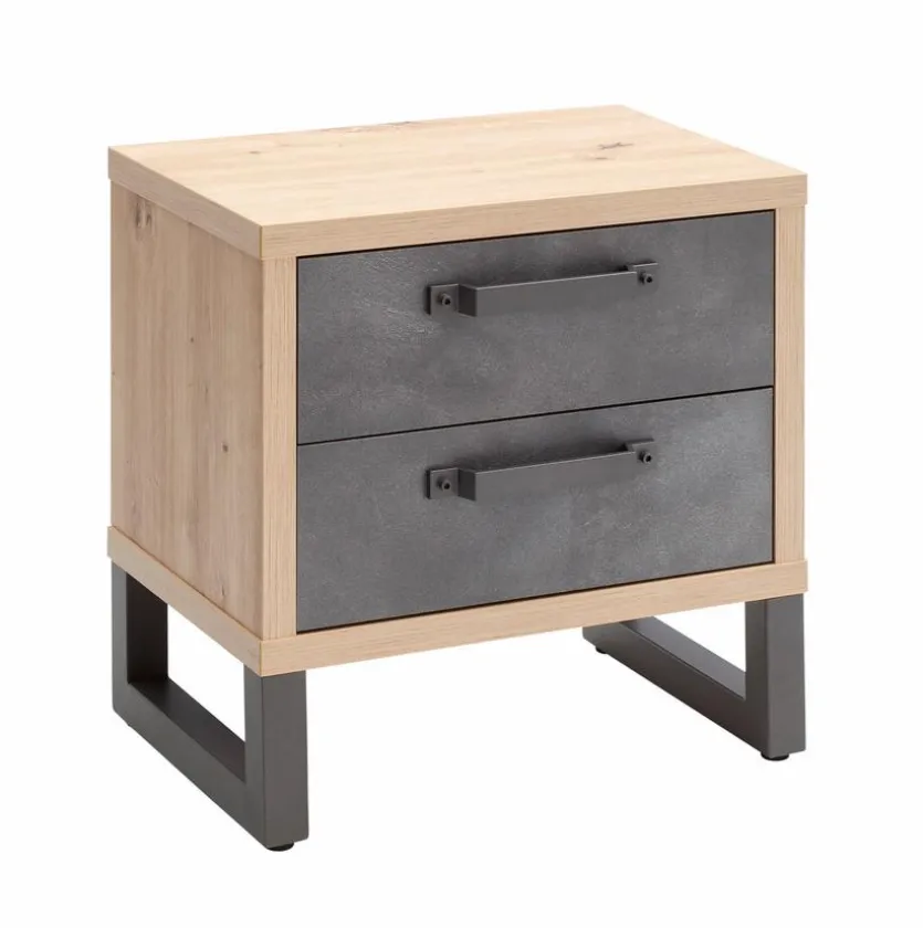 - Aus Holzwerkstoff (Spanplatte) mit kratzfester Melaminharzfolie in Artisan Eiche Nachbildung, Absetzung aus Holzwerkstoff (Spanplatte) mit kratzfester Melaminharzfolie in „Tadao“ Steinoptik