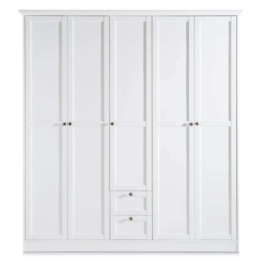 Der Kleiderschrank Landwood bietet viel Platz für Hosen, Shirts, Hemden und Co. Hinter fünf Türen und zwei Schubladen können Sie Ihre Dinge gut ordnen. Durch die Rahmenoptik erhält der Kleiderschrank Landwood außerdem ein stilvolles und vielseitig kombinierbares Äußeres.