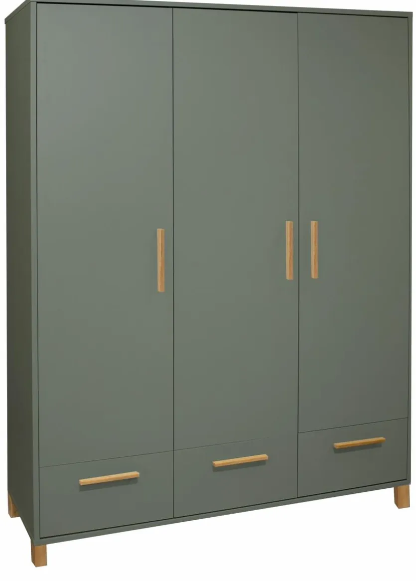 - Mit 3 Türen, 3 Schubkästen, 3 schmalen Böden, 1 breiten Boden und 1 Kleiderstange