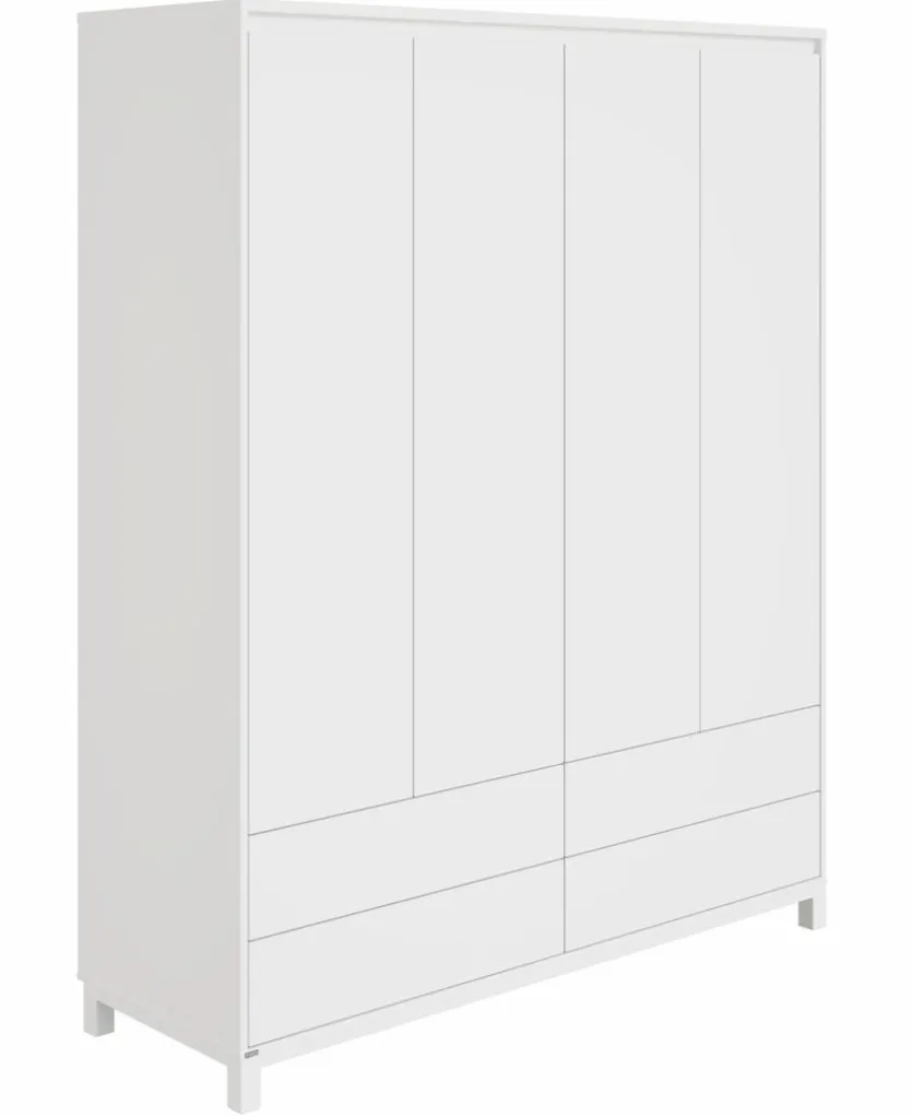 - Mit 4 Türen, 4 Schubkästen unten, 8 Einlegeböden und 2 Kleiderstangen