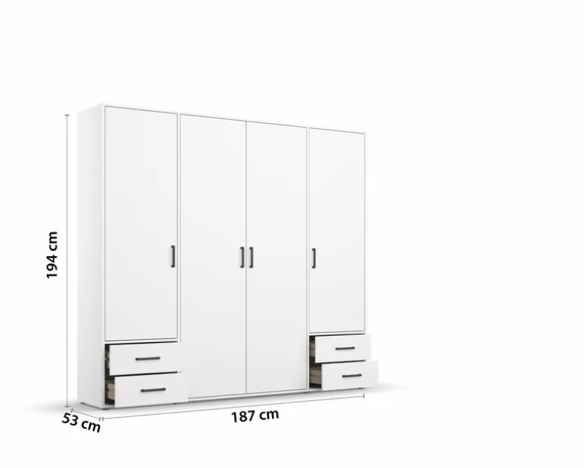 Verleihen Sie Ihrem Zuhause mit dem Drehtürenschrank 4-trg. Voyager 187×194 cm von rauch BLUE einen eleganten Touch. Der Schrank besticht mit seinem hochwertigen Design und einer durchdachten Aufteilung. Mit fünf Einlegeböden, einer Kleiderstange und vier Außenschubkästen bietet er ausreichend Platz für Ihre Kleidung und Accessoires. Erleben Sie mit dem Drehtürenschrank 4-trg. Voyager 187×194 cm eine perfekte Aufbewahrungslösung.