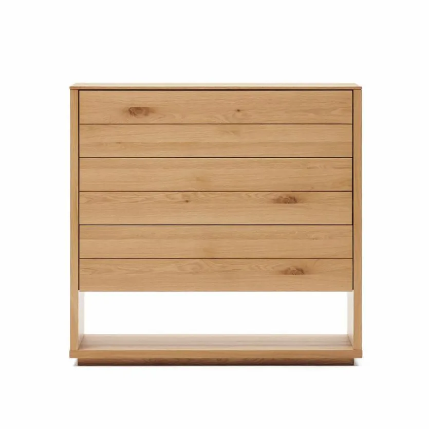 In der Kommode Alguema verstauen Sie dank zalhreicher Stauraummöglichkeiten viele Alltagsgegenstände. Unter den Schubladen gibt es ein offenes Fach, welches sich ideal für Schuhe eignet. Neben dem hohen Komfort überzeugt die Kommode Alguema mit ihrem schlichten, aber stilvollen Design. So bereichert sie auch Ihre vier Wände.