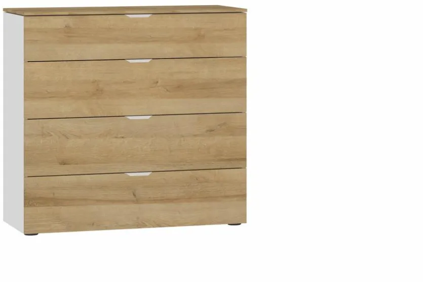Mit der Kommode Beimöbelprogramm sorgen Sie ganz leicht für Ordnung in Ihren vier Wänden. Ob im Schlafzimmer, Wohnbereich oder im Flur – dieses attraktive Möbelstück macht überall eine gute Figur. Vier Schubkästen sorgen für reichlich Platz, die hochwertige Melaminharzfolie gewährleistet Langlebigkeit.