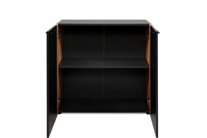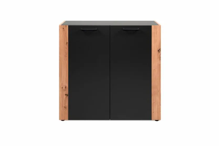 Die Kommode Cento überzeugt mit ihrer angesagten Kombination aus Holzoptik und tiefschwarzen Kontrastelementen, wodurch sie genau den Nerv der Zeit trifft. Hinter zwei Türen bietet sie Ihnen außerdem viel Stauraum für Nützliches und Liebgewonnenes und sorgt so für mehr Ordnung. Besonders gut passt die Kommode Cento zu trendbewussten und rustikalen Einrichtungskonzepten, wo sie sich mühelos einfügt.