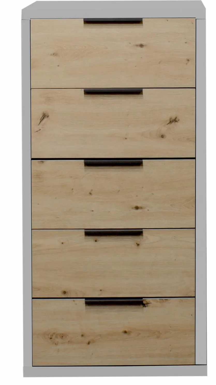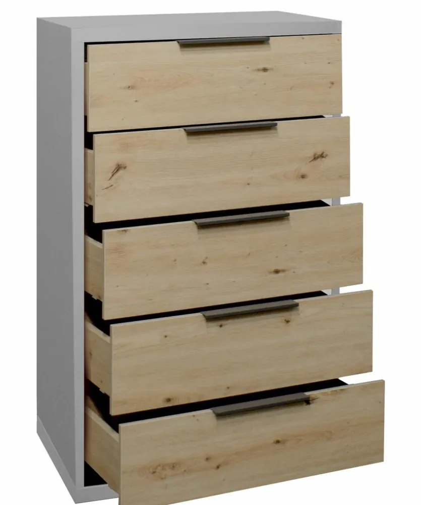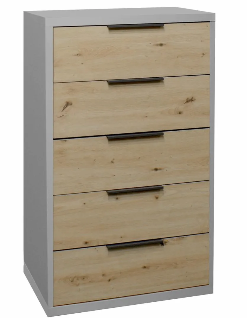 Die Kommode Clyde des Herstellers Mäusbacher zeichnet sich durch ihr authentisches und stilvolles Holzdesign aus. Sie verfügt zudem über fünf Schubladen mit Selbsteinzug. Auf diese Weise bietet die Kommode Clyde aus dem Hause Mäusbacher besonders praktischen Stauraum und trägt zur Ordnung bei.