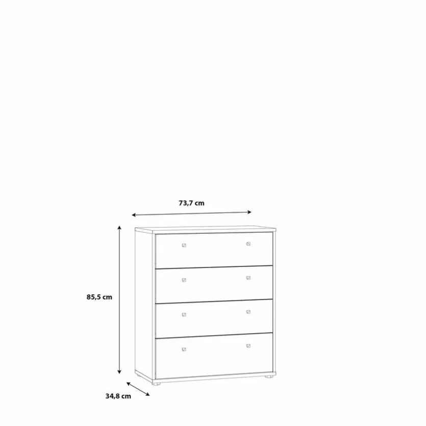Die Kommode Faik von FORTE begeistert durch ihr schlichtes, elegantes Design. Sie können das zurückhaltend gestaltete Möbelstück zu vielen Wohnstilen kombinieren und so die Einrichtung spielend leicht bereichern. Zudem bietet die Kommode Faik viel Platz in ihren vier Schubladen, um für Ordnung im Alltag zu sorgen.