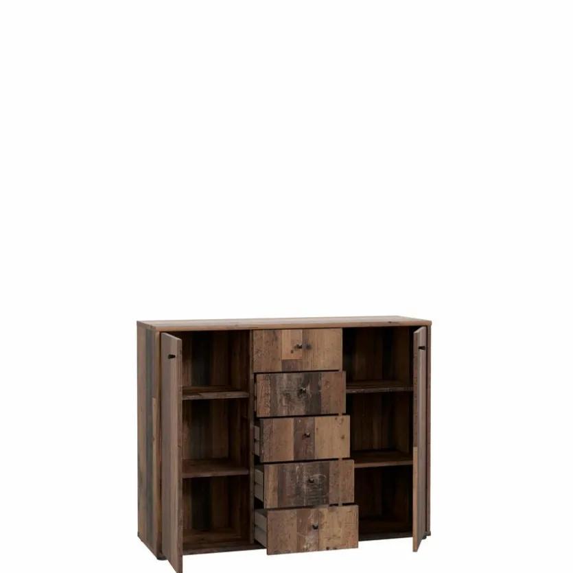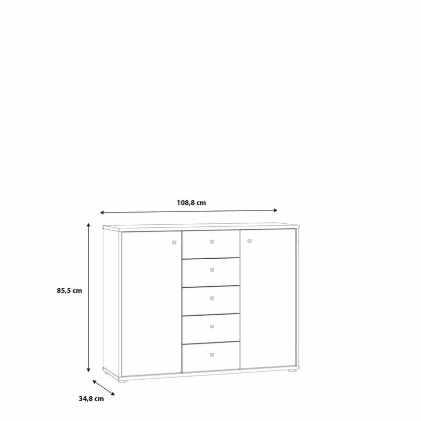 Die Kommode Faik aus dem Hause FORTE zeichnet sich durch ihr ästhetisches und elegantes Holzdesign aus. Mit zwei Türen und fünf Schubladen stellt dieses Möbelstück besonders viel Platz zur Verfügung. So trägt die Kommode Faik der Marke FORTE zur Ordnung im Haushalt bei.