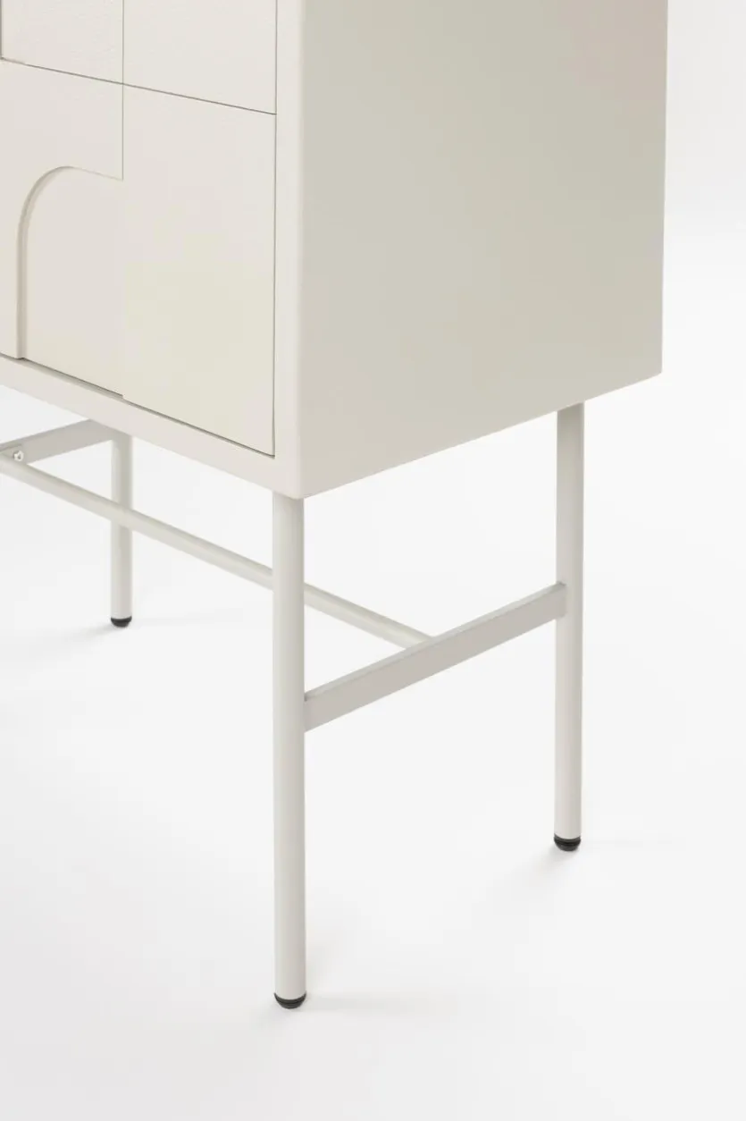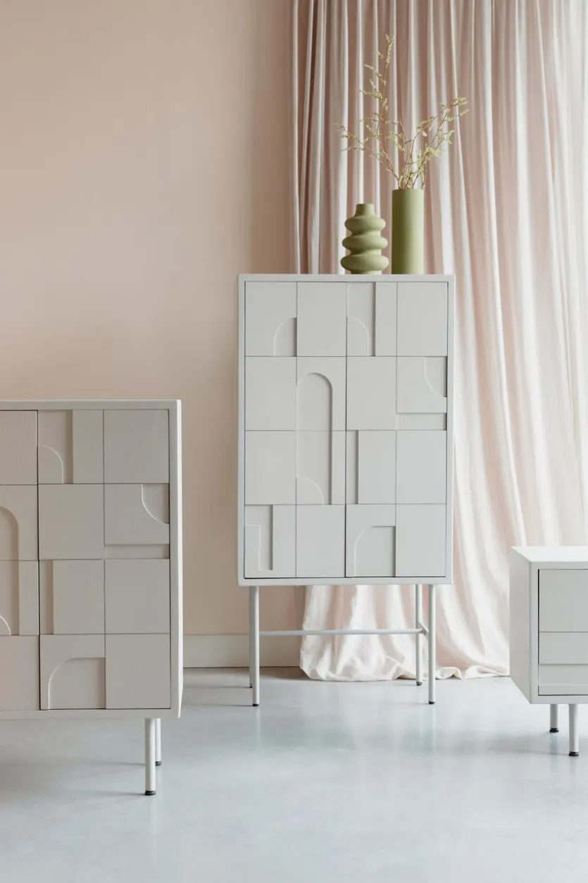 Die Kommode Funk beeindruckt mit grafischer Struktur und minimalistischer Formensprache. Dank ihres markanten Reliefs wird sie zum stilvollen Akzent in Wohn- oder Schlafbereichen. Die Kommode Funk bietet nicht nur Stauraum, sondern auch gestalterischen Mehrwert – ein Möbelstück, das Funktionalität und modernes Design harmonisch vereint.