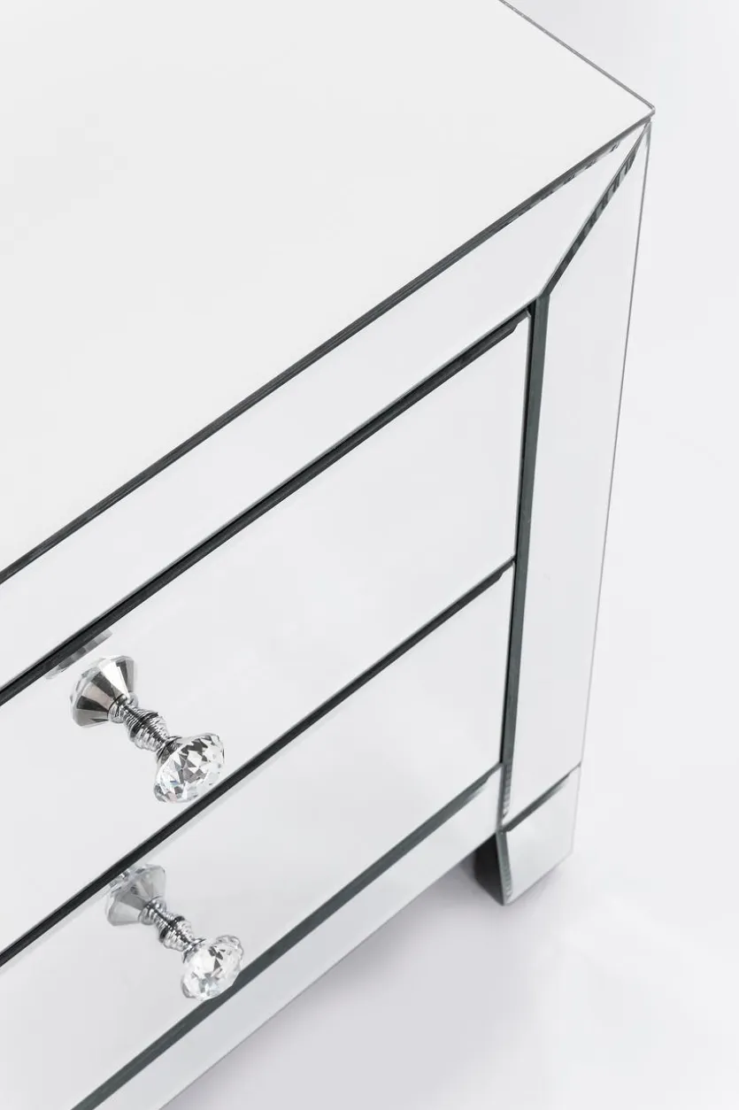Der Name ist bei diesem Möbelstück definitiv Programm. Sehr luxuriös präsentiert sich die Kommode Luxury der Marke KARE, die komplett verspiegelt wurde und nicht zuletzt durch die beiden Griffe aus Klarglas sehr edel wirkt. Die vier Füße bieten nicht nur einen sicheren Stand, sondern sorgen auch dafür, dass die Kommode Luxury von KARE sehr leicht und luftig wirkt.
