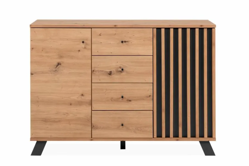 Die attraktive Kommode Medan begeistert Einrichtungsfans mit ihrem ausdrucksstarken Design, das durch die angesagte Holz-Optik am Puls der Zeit liegt. Sie lässt sich nicht nur mit vielen Einrichtungsstilen kombinieren, sondern bietet Ihnen im Wohnzimmer, im Schlafzimmer oder in der Diele einen stylischen Stauraum für Ihre Utensilien. So sorgen Sie mit der Kommode Medan gleichzeitig für Ordnung und modernes Flair.