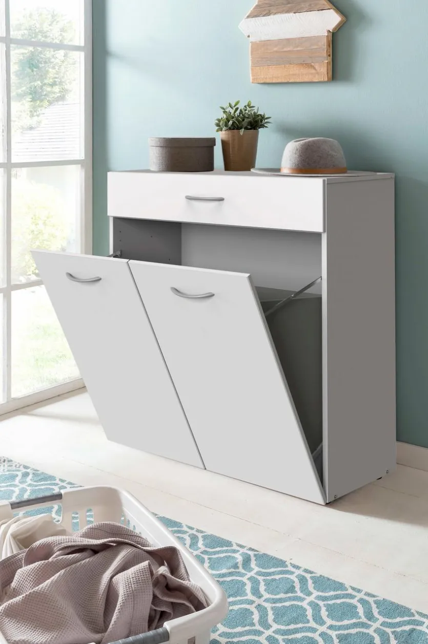 Die Kommode Multiraumkonzept von WIMEX stellt an jedem Ort eine elegante Lösung dar, um schmutzige Textilien zu sammeln. In den beiden Boxen im Inneren des Schrankes können Sie verunreinigte Kleidung und Co. für unterschiedliche Waschprogramme bereits vorsortieren. Am Waschtag nehmen Sie den entsprechenden Korb einfach aus der Kommode Multiraumkonzept heraus und transportieren ihn zur Waschmaschine.