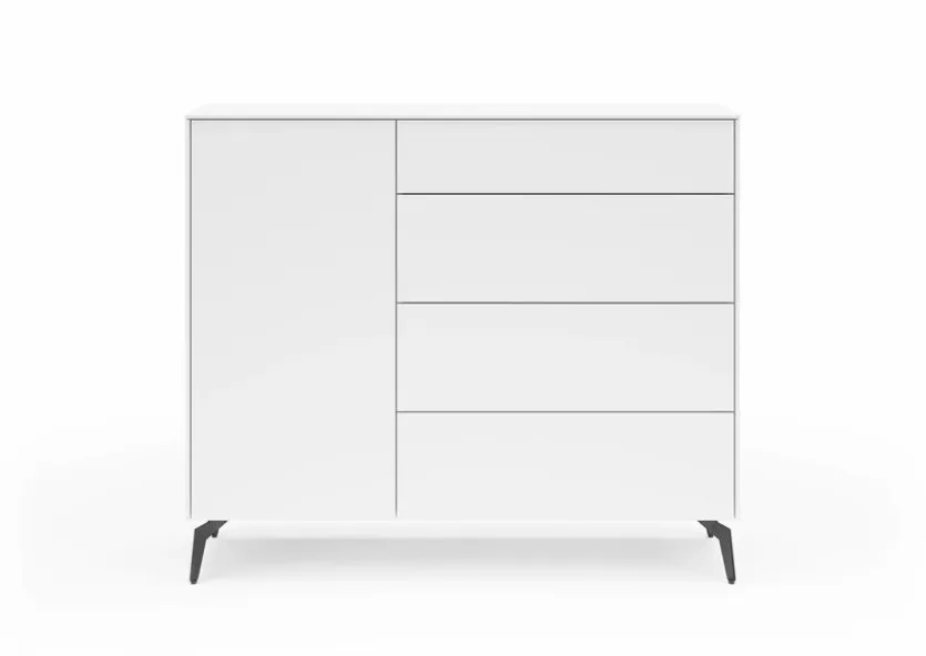 Durch ihr geradliniges und kompaktes Design wirkt die Kommode Riverside aus dem Hause set one by Musterring äußerst zeitgemäß. Die kratzfeste Melaminharzfolie des Möbelstücks sorgt außerdem für eine unempfindliche Oberfläche. Natürlich trägt die Kommode Riverside dank des großen Stauraums ebenfalls zur Ordnung bei.
