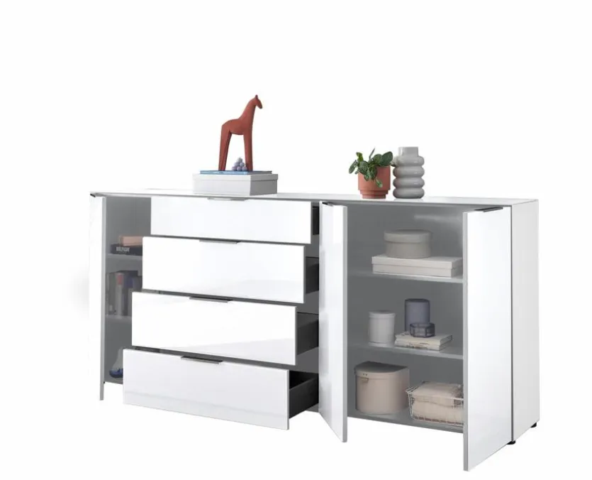 Die Kommode Santorin bietet dank zahlreicher Fächer und Schubladen nicht nur reichlich Stauraum, sondern auf ihr können auch Dekorationsobjekte stilsicher in Szene gesetzt werden. In optischer Hinsicht ist das praktische Möbelstück ebenfalls eine Bereicherung für unterschiedlichste Wohnräume. Dank des klar strukturierten, unaufgeregten Designs fügt sich die Kommode Santorin nämlich harmonisch in zahlreiche Einrichtungskonzepte ein.