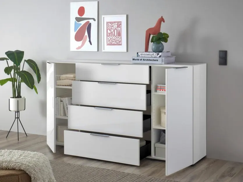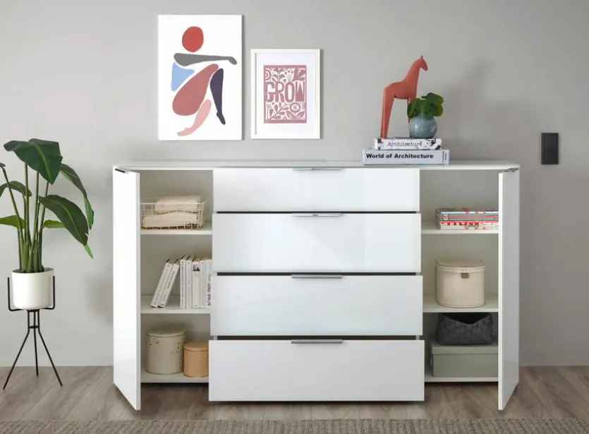 Die Kommode Santorin bietet Ihnen mit insgesamt sechs Fächern jede Menge Platz, um verschiedenste Gegenstände hervorragend sortiert zu verstauen. Zugleich ist sie eine stilvolle Ergänzung für Wohnräume unterschiedlichster Art. Vor allem mit ihrer klaren, schnörkellosen Formgebung setzt die erstklassig verarbeitete Kommode Santorin ausgesprochen stilvolle optische Akzente.